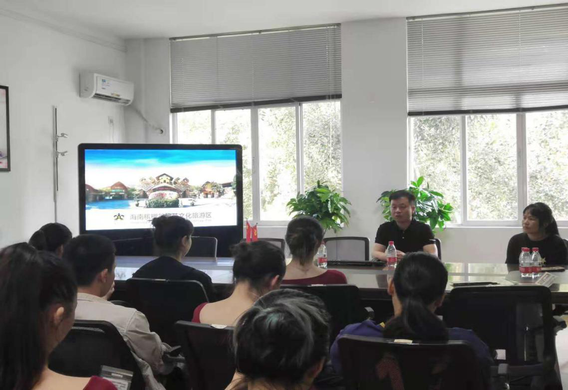 2018年11月23日15:00,在学院会议室进行了海南槟榔谷黎苗文化旅游发展有限公司是专场宣讲及招聘会。公司代表杨主管担任此次招聘会主讲人及面试官,音乐学院团委副书记袁威带领学院大四学生参加。