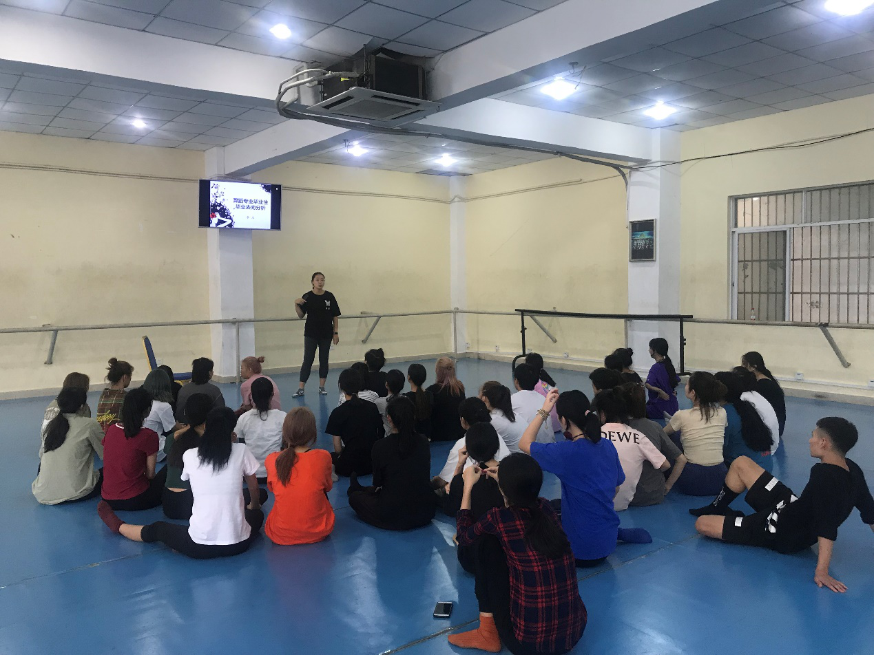 2019年10月17日15:40,舞蹈编导专业教师李乐在舞蹈房一进行了一场专门针对舞蹈毕业生就业去向的指导讲座,全体舞蹈编导毕业生均参加。