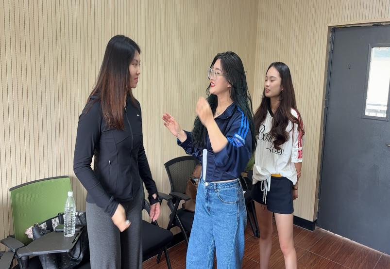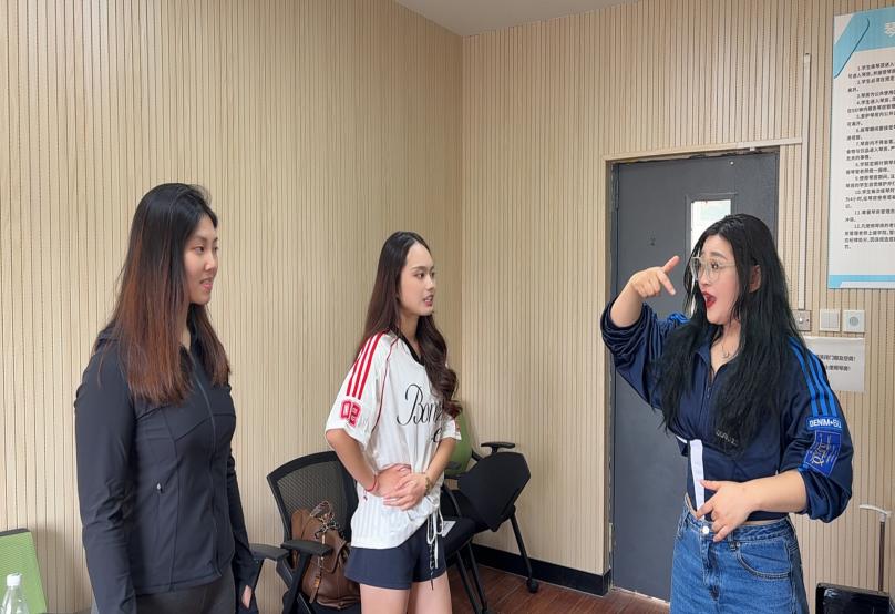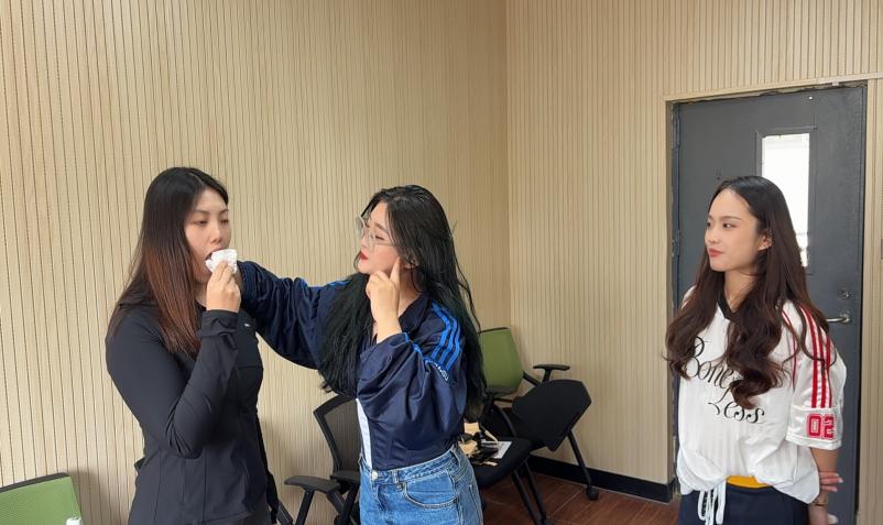在实操训练环节,马老师穿梭在队列中,逐一观察同学们的动作。发现有同学耸肩憋气时,她会轻轻拍肩提醒:“放松肩膀,感受气息从鼻腔缓缓进入,慢慢下沉到腹部,再自然呼出。” 在她的耐心引导下,原本紧张僵硬的新生们逐渐找到节奏,呼吸变得平稳深沉,脸上的紧绷感也渐渐褪去。