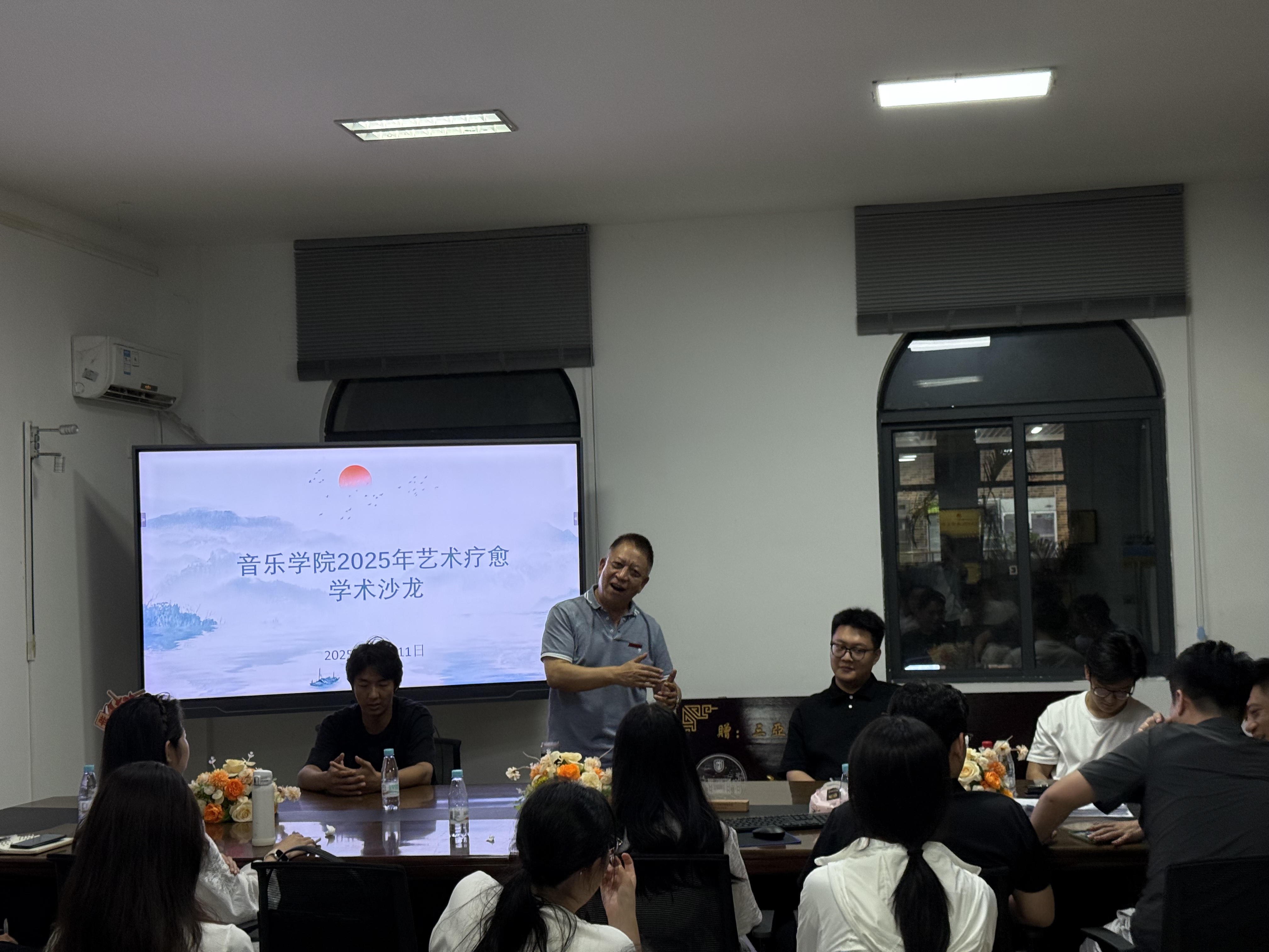 为回应当代青年心理健康的迫切诉求,拓宽音乐学院专业学生的多元就业赛道,构建跨学科融合育人的全新生态。11 月 11 日19:00,音乐学院艺术疗愈学术沙龙在学院会议室温情启幕。音乐学院张巨斌教授领衔主讲,参会人员院长助理王景泽老师及一众青年老师。主讲人张巨斌教授将音乐学、心理学、健康医学、教育学与社会工作五大领域有机串联,为在场师生带来一场兼具学术深度与实践温度的思想盛宴。