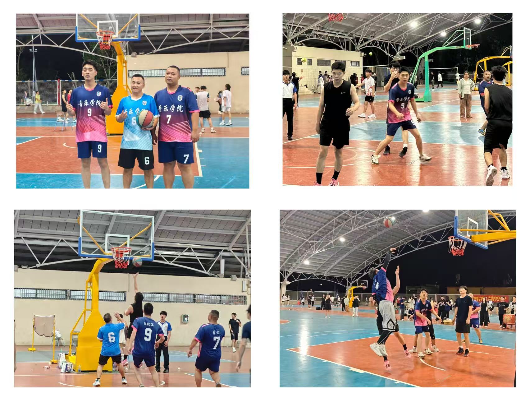 18:30,三人篮球赛开赛。我院参赛的教师代表们带球突破、传球配合、精准投篮、一气呵成。他们变向过人的灵动、挡拆配合的默契、投篮入网的清脆声响,让赛场成为青春的舞台。场边音乐学院同学们的呐喊与鼓点交织,每一次得分都掀起欢呼热潮,队员们以饱满状态完成每一轮攻防,用奔跑与跳跃书写热血篇章。