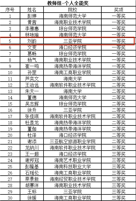 本次比赛汇集了来自海南省25所高校的百余名优秀选手同台竞技,刘韵老师凭借其扎实的专业功底、出色的舞台表现以及精彩的现场发挥,经过激烈的角逐,最终荣获单项一等奖、个人全能一等奖、教学展示(微课)三等奖的好成绩。这一成绩的取得,充分展现了我院音乐专业教师的教学水平和综合素质,是全院师生共同努力、长期积累的结果,也为我院在音乐教育领域的声誉增添了浓墨重彩的一笔。