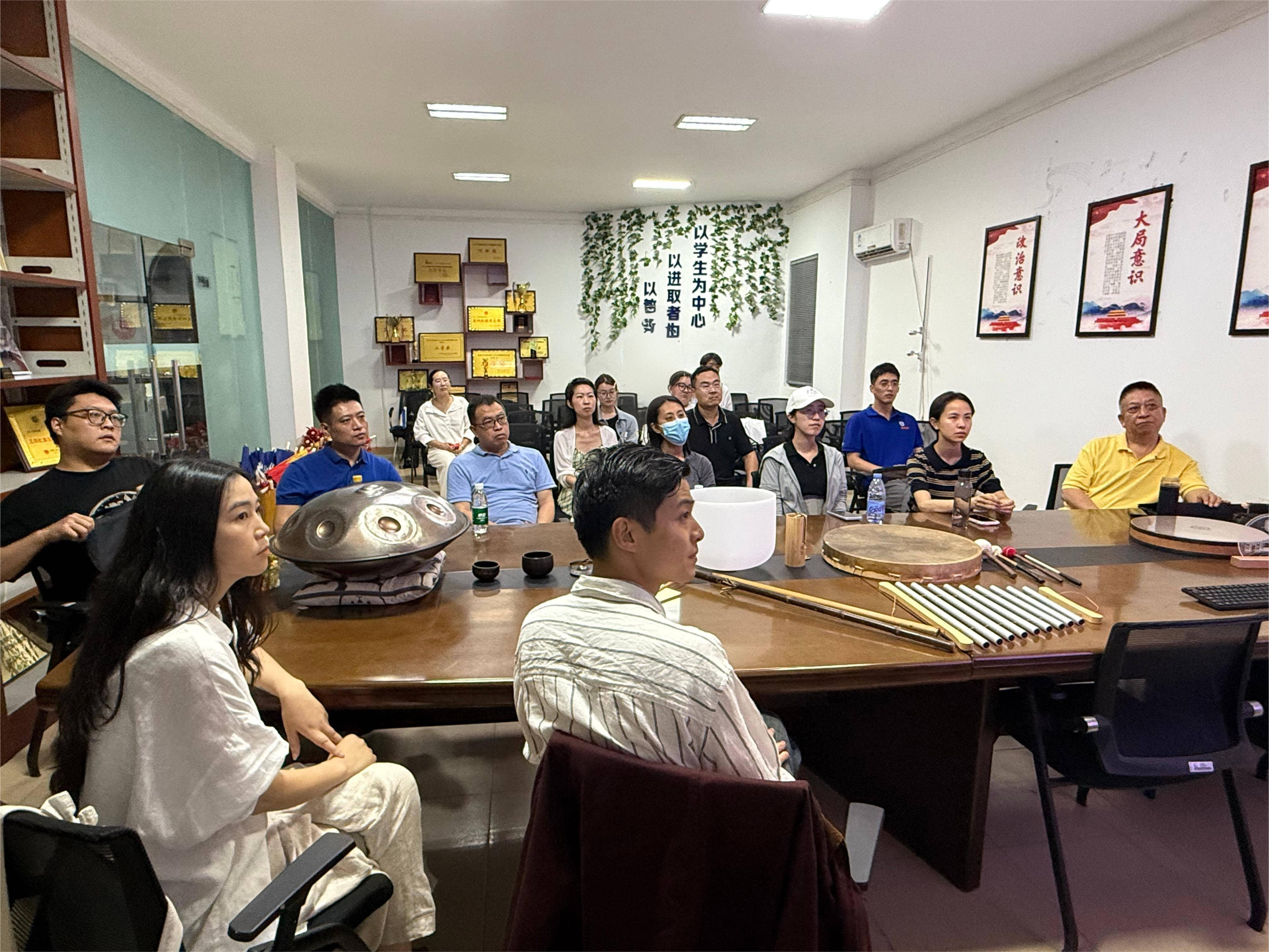 沙龙以黎族音乐疗愈为核心,青年教师徐升老师通过PPT系统呈现黎族民歌、传统乐器及舞蹈音乐的文化特质,宋明阳博士与吴序女士结合实践经验,从产品开发、社区服务、健康旅游三大维度,解析黎族音乐疗愈的落地路径与推广策略,并融入“活在当下”的理念与专业理论支撑,让在场师生对传统音乐的现代价值有了全新认知。宋明阳博士、吴序女士还带来梵文唱诵、三脉七轮能量疗愈等特色分享,现场围绕黎族音乐康养旅游项目设计、疗愈产品开发等方向研讨,明确将民族音乐与现代疗愈技术结合,打造兼具文化与社会价值的实践路径,助力学子适配文旅康养、民族文化传承等就业领域。