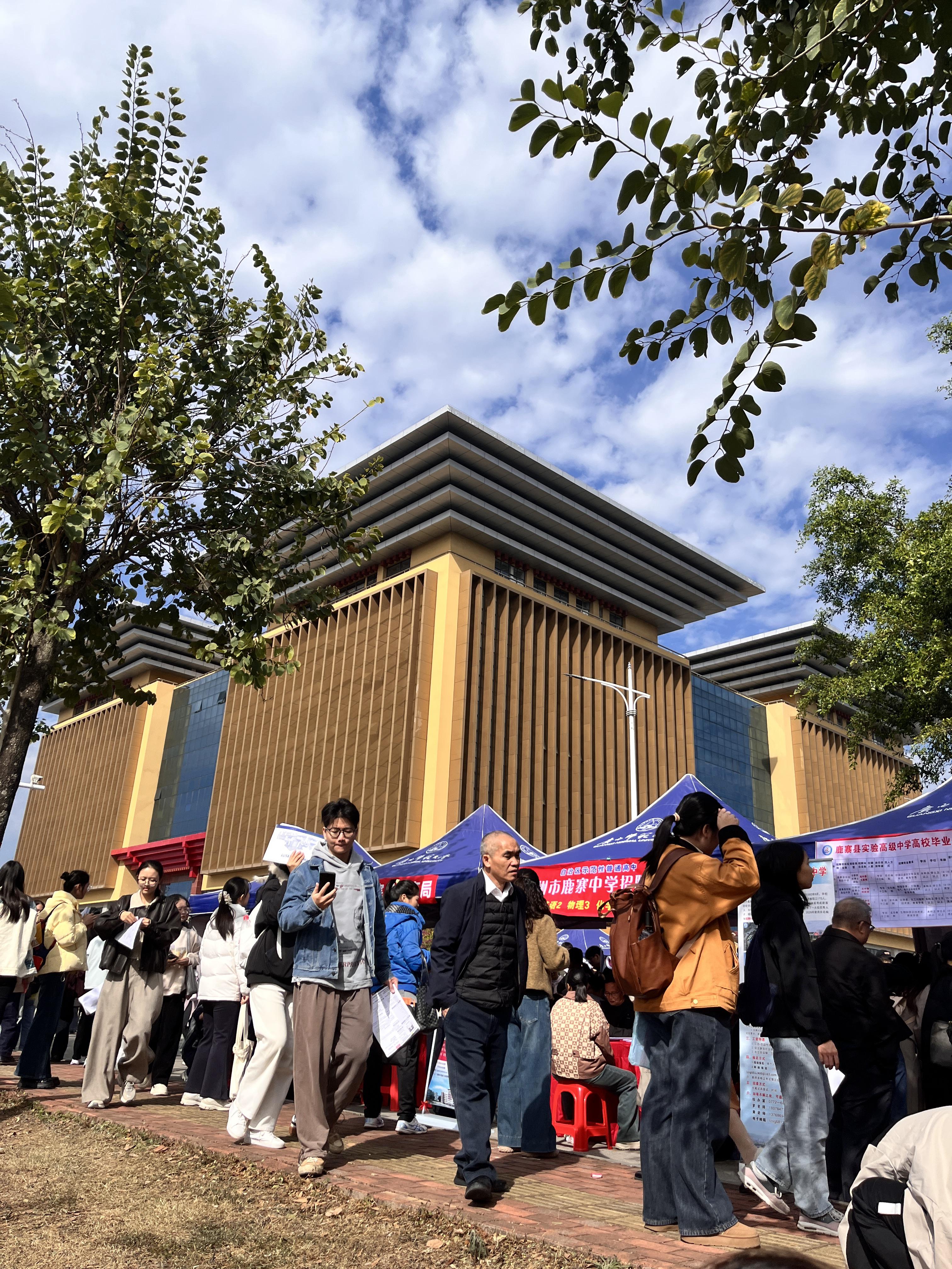 在广西师范大学雁山校区招聘会现场,我院毕业生手持简历,穿梭于各展位之间,认真阅读岗位说明,主动与招聘人员交流,详细了解学科需求、薪资待遇及职业发展路径。学生表示这样的大型招聘会为他们提供了难得的面对面交流机会,能够更直接地了解用人单位需求,也为自己的职业规划提供了重要参考。学生表示:“我一直在关注基础教育领域的发展,这次招聘会提供了很多与专业对口的岗位,我希望能抓住机会,成为一名优秀的人民教师。”