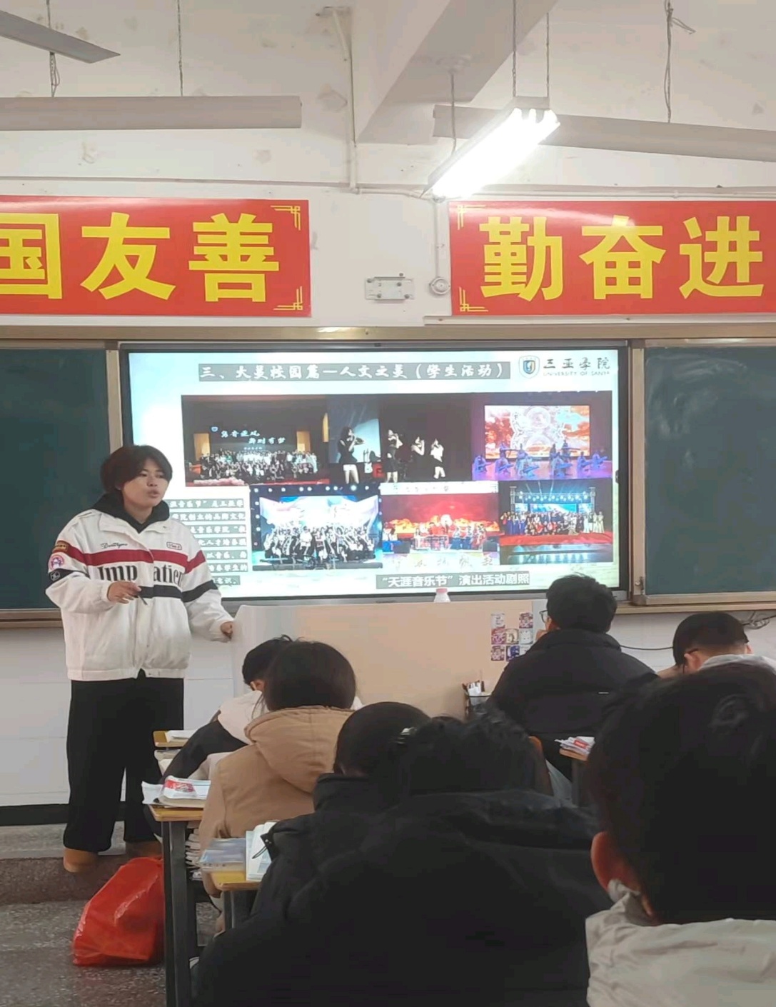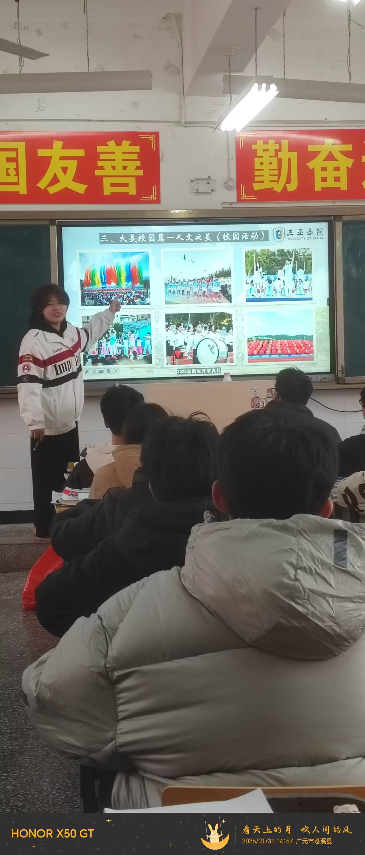 作为三亚学院深耕多年的特色社会实践品牌,“把我的大学带回家” 活动已成为连接高校与生源地中学的重要纽带。此次宣讲,邓小欣以 “弦动青春” 为核心主线,结合自身在三亚学院的真实学习经历,从办学实力、校园环境、专业培养、实践平台等多个维度,为学弟学妹们展开了一场干货满满的分享。