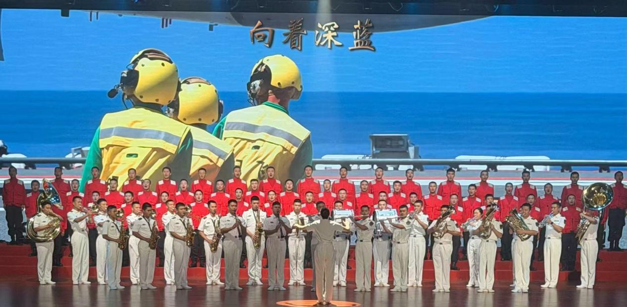 在演出当日,音乐会以《深蓝,深蓝》这首作品把官兵情感推上高潮。乐曲内容包含管乐与合唱,嘹亮的号角与澎湃的乐章在碧海蓝天之间回荡,赢得全体舰员们阵阵的掌声。