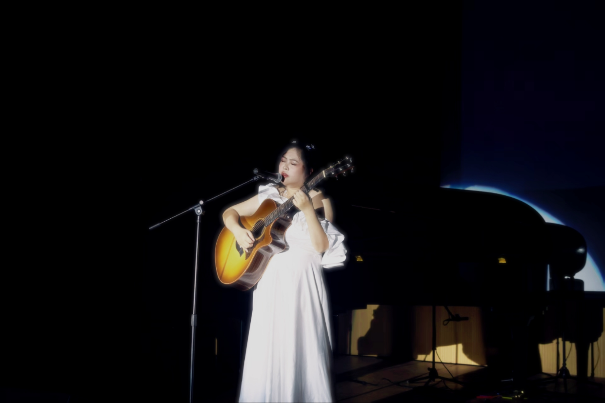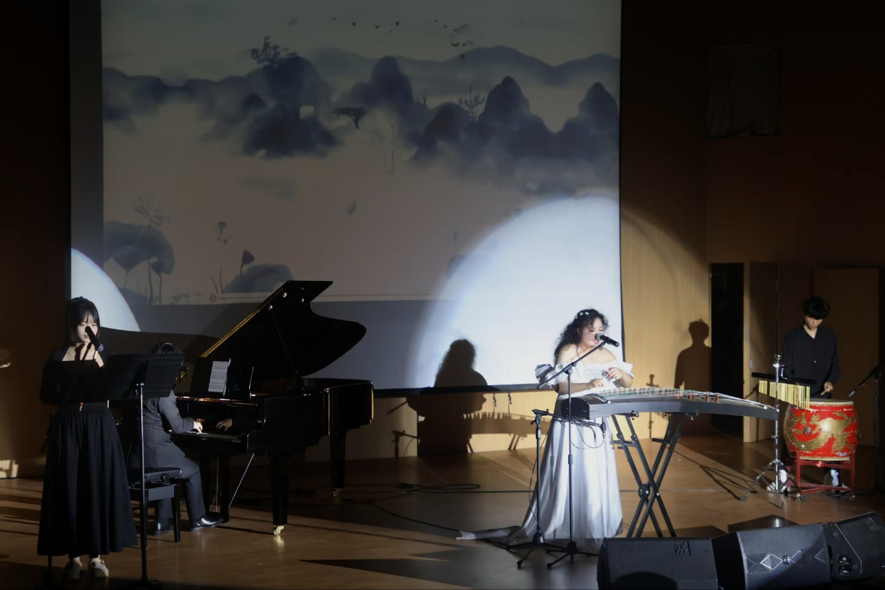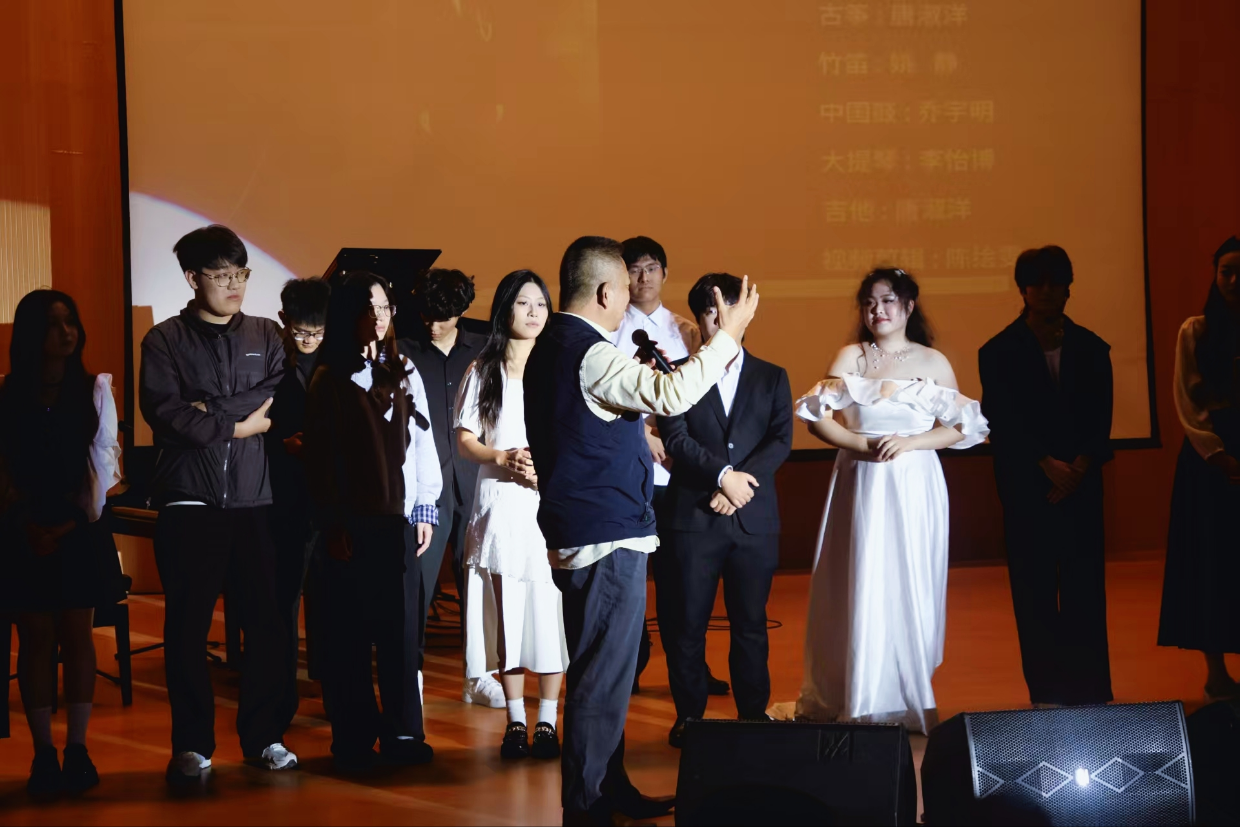 本场音乐会演出内容的编排上,亮点纷呈、形式多元。唐淑洋同学不仅倾情演绎了《季节》、《做自由的风》两首原创曲目,用细腻的唱腔与真挚的情感传递出个人的音乐感悟;还挑战经典,献上音乐剧《猫》中的传世唱段《Memory》,凭借扎实的唱功与出色的舞台表现力,重现了经典作品的独特韵味。此外,唐淑洋同学还携手乐队,带来古筝、吉他、钢琴弹唱表演,多种乐器的巧妙融合与灵动演绎,充分展现出其多元化的音乐素养与表演能力,赢得了现场观众的阵阵掌声。