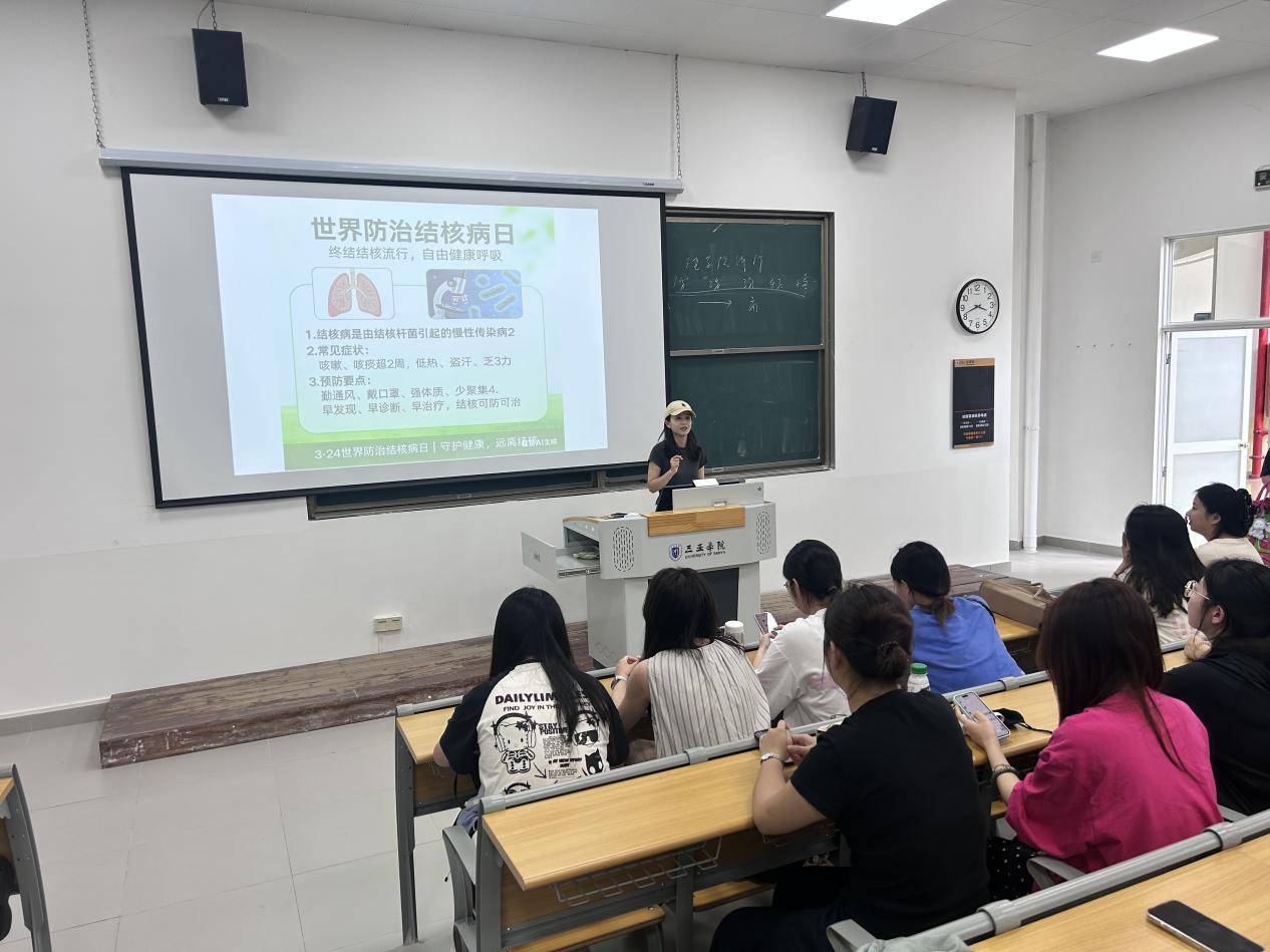 “结核病主要通过呼吸道飞沫传播,咳嗽、打喷嚏都可能在不经意间传播细菌。”各位老师通过生动的案例和详实的数据让同学们深刻认识到结核病对个人健康及校园公共卫生的潜在威胁,消除了以往对结核病的恐惧和认知盲区。